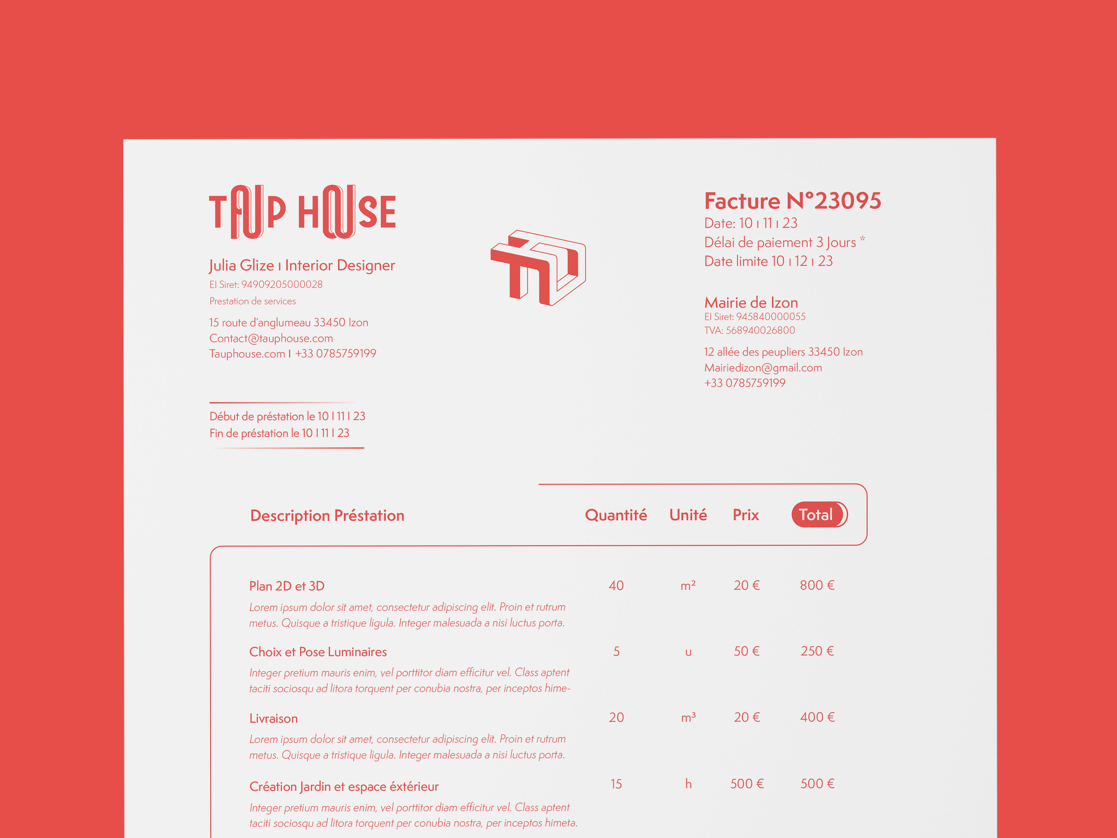 Création de l'identité visuelle complète de TaupHouse, Cabinet d'architecture. Les croquis du logo ont été finalisés sur Illustrator. Les documents réalisés sur InDesign ... Un style rétro, élégant et construit .
